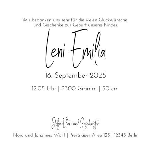 Geburtskarte in Polaroidoptik in schwarz und weiß - Quadratisch