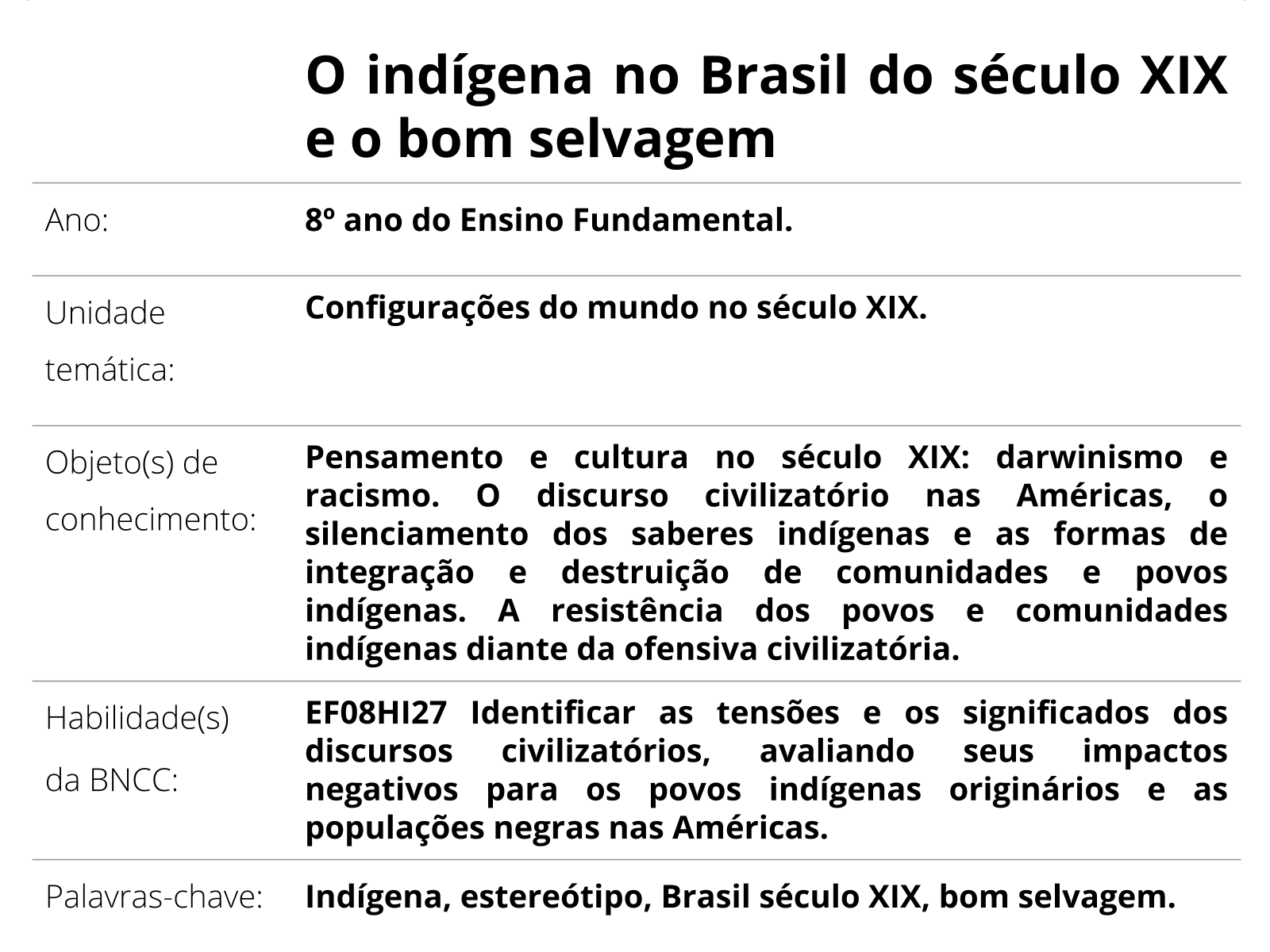 Plano de Aula - 8º ano - História - O indígena no Brasil do século XIX e o bom selvagem